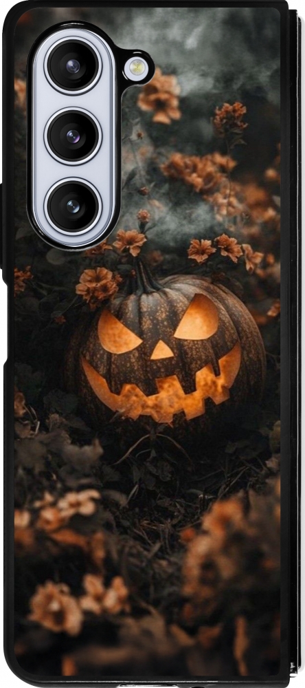 Coque Samsung Galaxy Z Fold5 - Silicone rigide noir Halloween 2025 Pumpkin with flowers