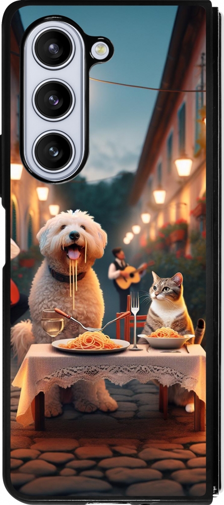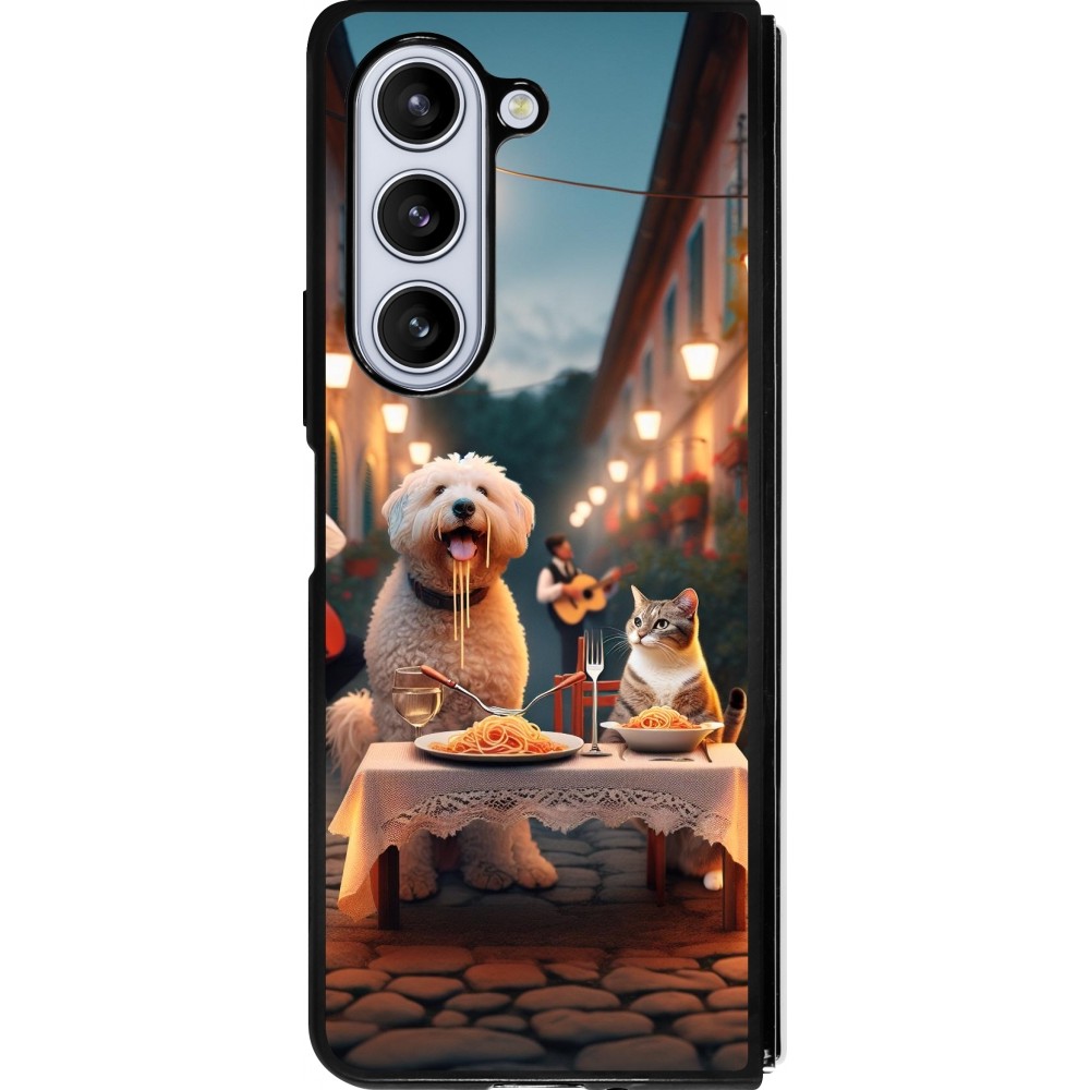 Coque Samsung Galaxy Z Fold5 - Silicone rigide noir Valentine 2024 Dog & Cat Candlelight
