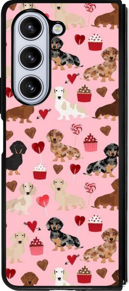 Coque Samsung Galaxy Z Fold5 - Silicone rigide noir Valentine 2024 puppy love