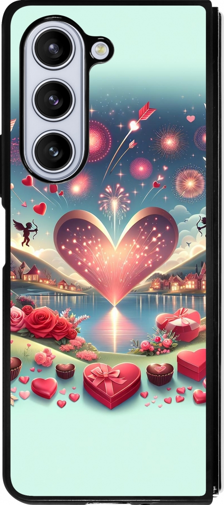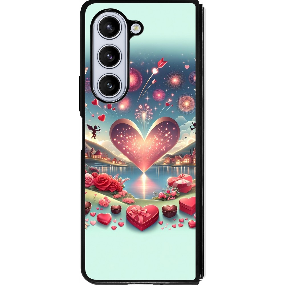 Coque Samsung Galaxy Z Fold5 - Silicone rigide noir Valentine 2025 Chic