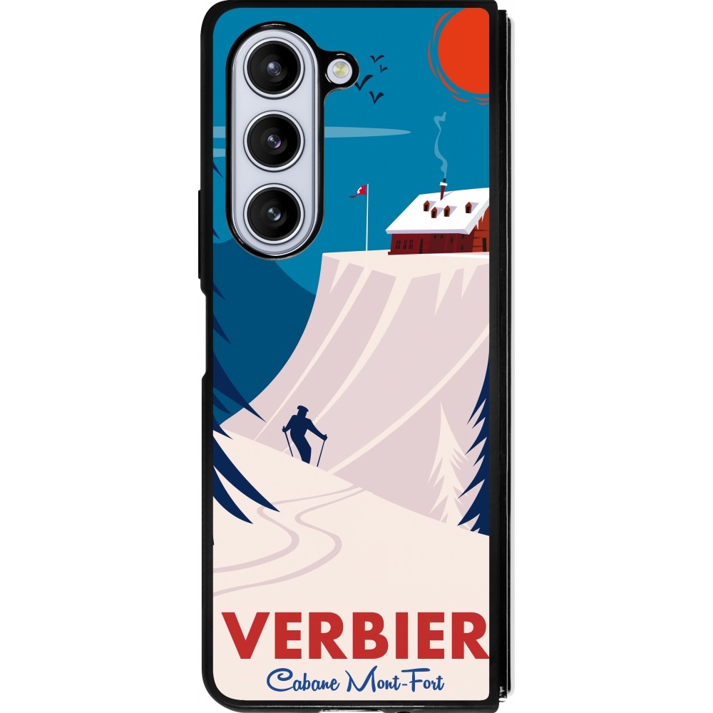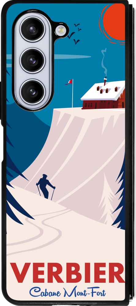 Coque Samsung Galaxy Z Fold5 - Silicone rigide noir Verbier Cabane Mont-Fort