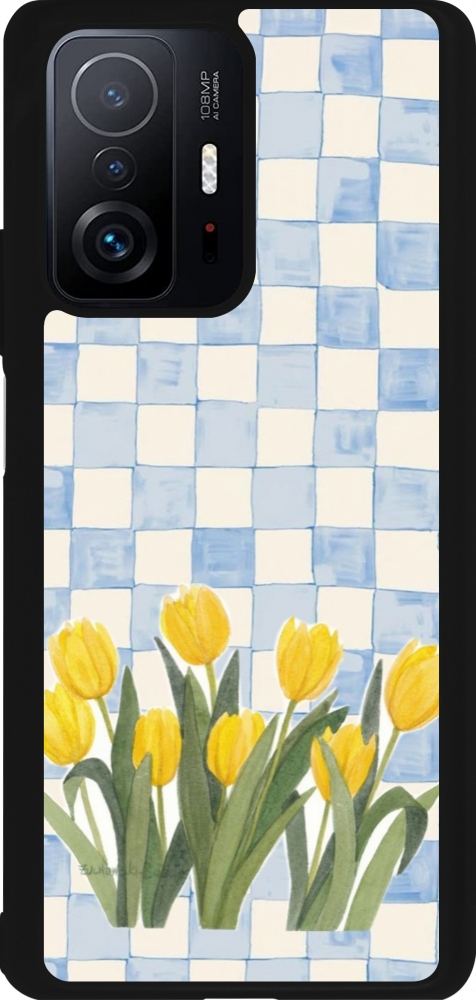 Coque Xiaomi 11T - Silicone rigide noir Blue vichy tulips Spring 2026