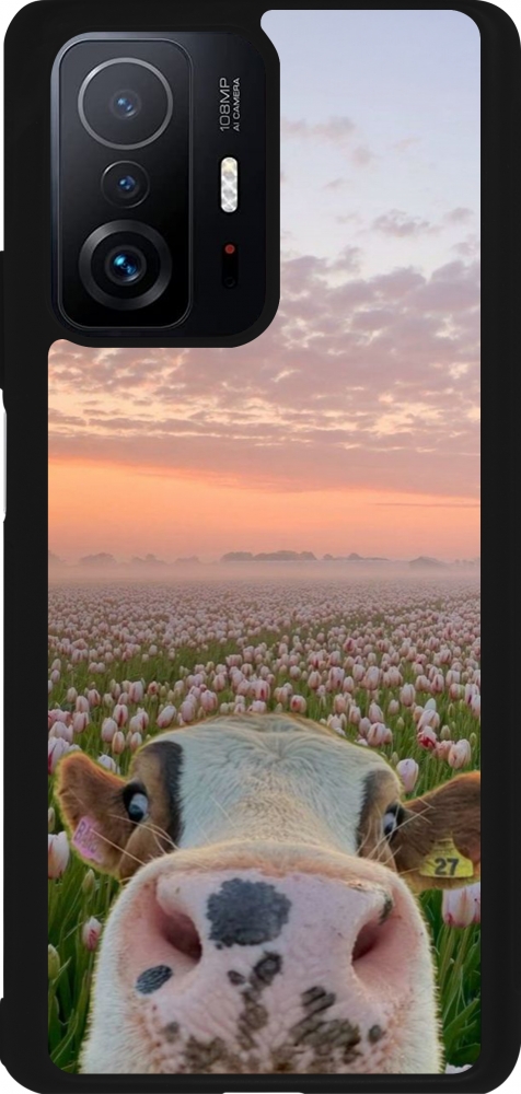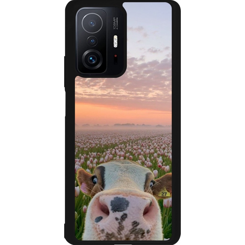 Coque Xiaomi 11T - Silicone rigide noir Cow with tulips Spring 2026