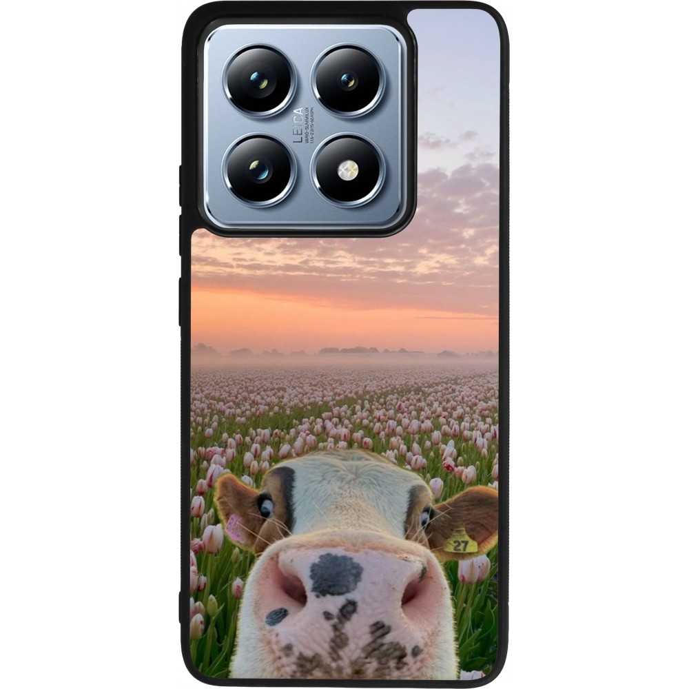 Coque Xiaomi 14T Pro - Silicone rigide noir Cow with tulips Spring 2026