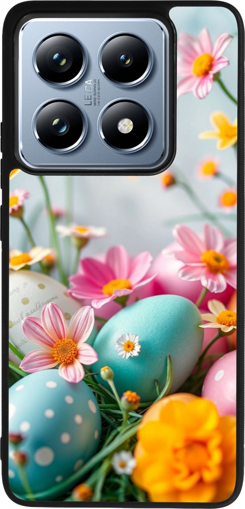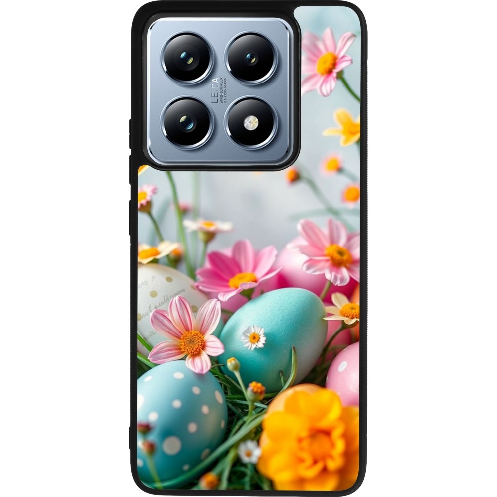 Coque Xiaomi 14T Pro - Silicone rigide noir Easter 2026 Eggs with flowers