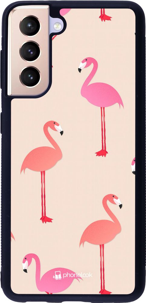 Coque Samsung Galaxy S21 5G - Silicone rigide noir Pink Flamingos Pattern