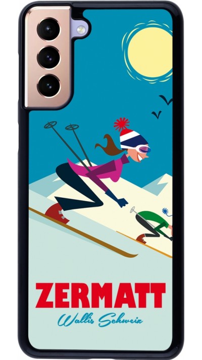 Coque Samsung Galaxy S21+ 5G - Silicone rigide noir Zermatt Ski Downhill